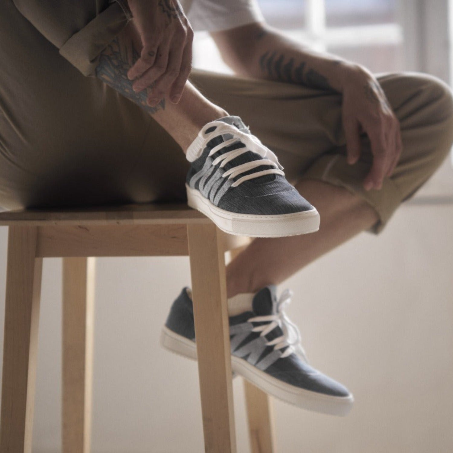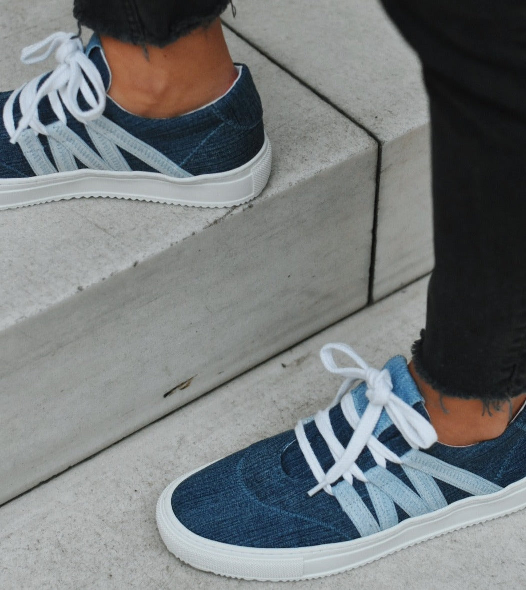 This colourway is subtle, with its double trouble blue denim, which makes it easy to match your everyday wear. But do not hesitate to wear these vegan sneakers out on the town in your Canadian Tuxedo. They are perfect for it!